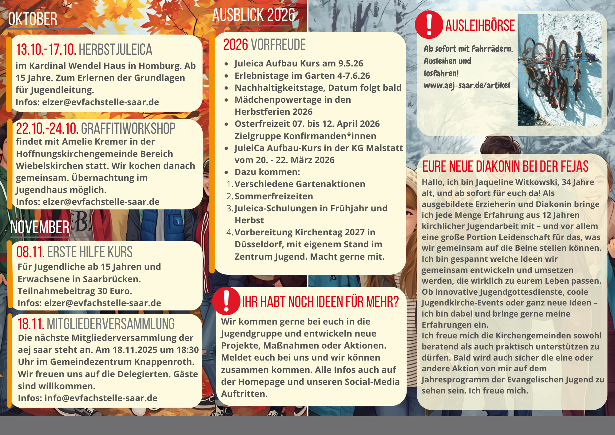 Wir freuen uns, unser Programm von Oktober bis Dezember zu präsentieren.